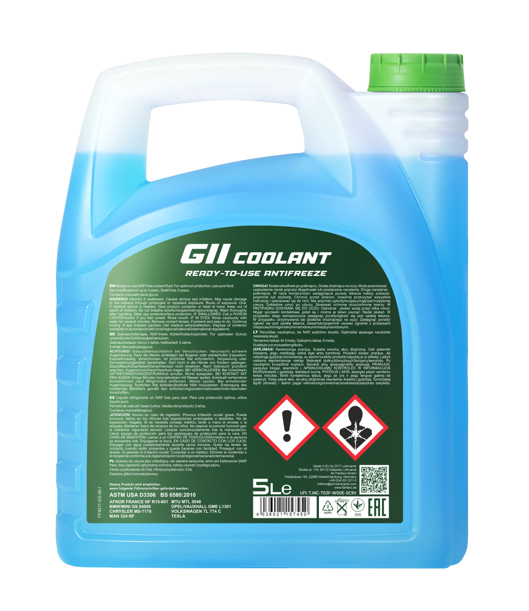Силикатный (неорганический – IAT Inorganic Acid Technology) готовый раствор, предназначенный для круглогодичного использования в любых современных системах охлаждения содержащих медные, латунные и алюминиевые компоненты, для которых рекомендуется применение антифризов на этиленгликолевой основе.
